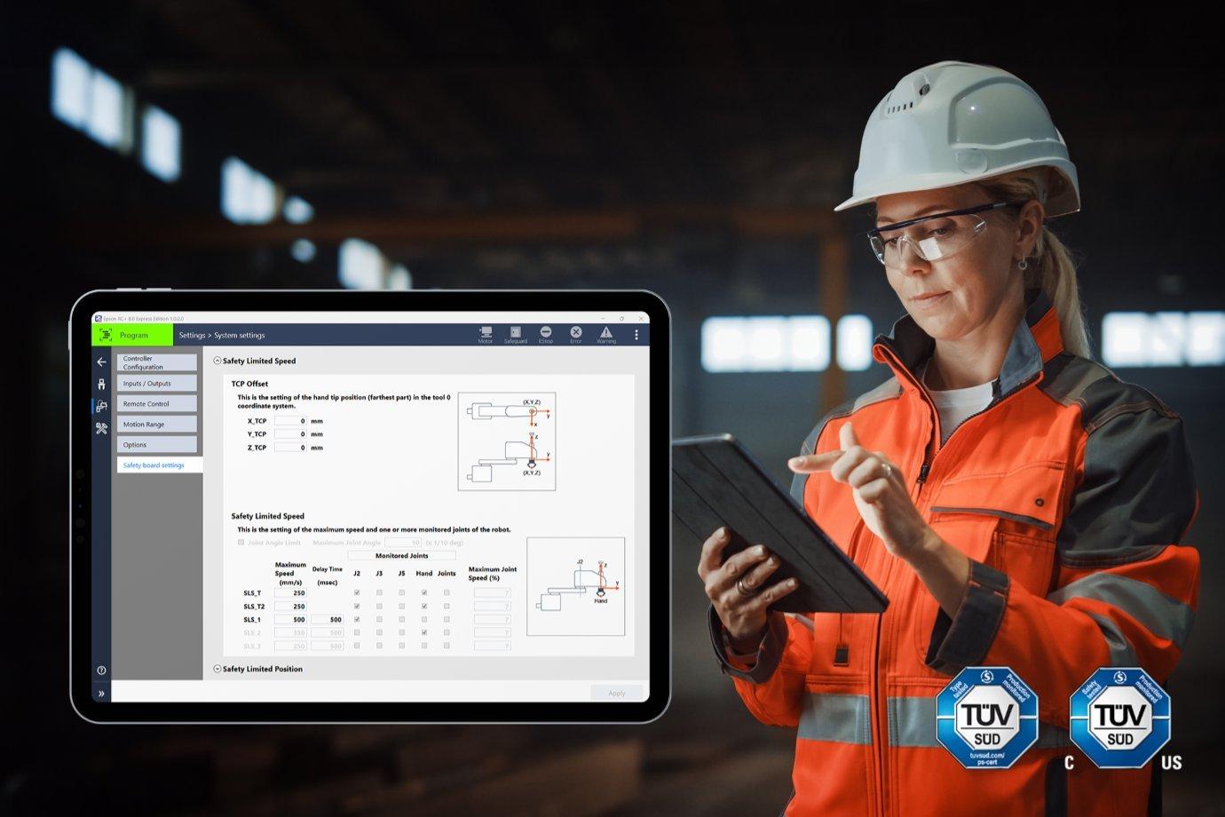 Epson’s safety functions allow the machine to keep running while operators perform their tasks. Operators can work in synchronisation with the machine by reducing risks through safe speed and position monitoring.