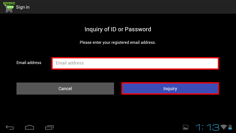 Enter your e-mail address and select Inquiry.